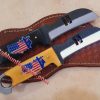 Our steel combination has taken years to perfect and has been tested under a variety of application which will offer professional performance in categories of toughness, strength (lateral stress) and edge honing and holding ability. In a 5 spot Rockwell test our blades will average near or close to 58 which offers a perfect balances between its toughness and strength.Our blades due to carbon content need to be regularly treated with wax and/or 3 in 1 oil to maintain its superior quality.