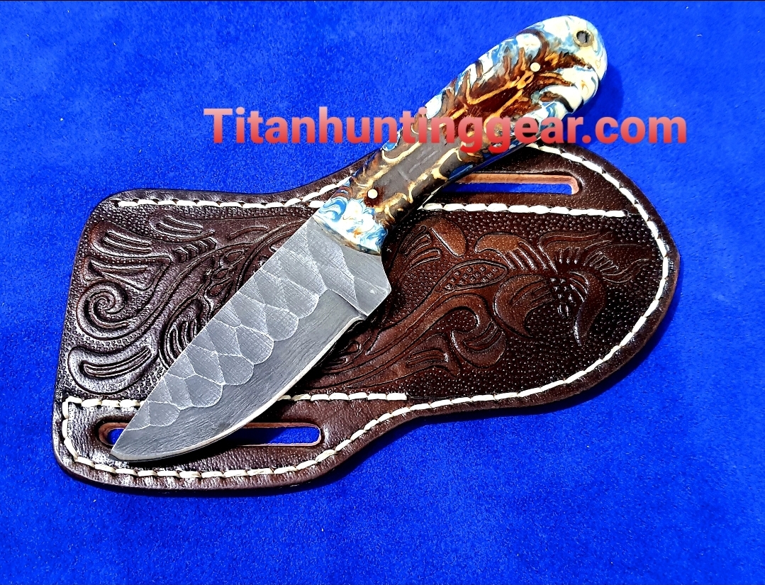 Handmade 1095 steel cowboy skinner knife overall length 8″inch handle made of pinecone hold edge and Comfortable handle comes with leather sheath.